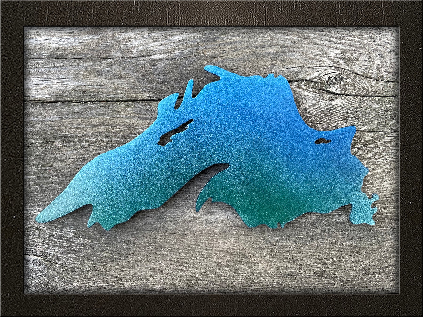 Cut from 20-gauge mild steel at the Iron Pine workshop, this magnet-backed piece is finished with enamel or acrylic clear-coat. The Lake Superior decorative magnet measures 5" x 2.5".