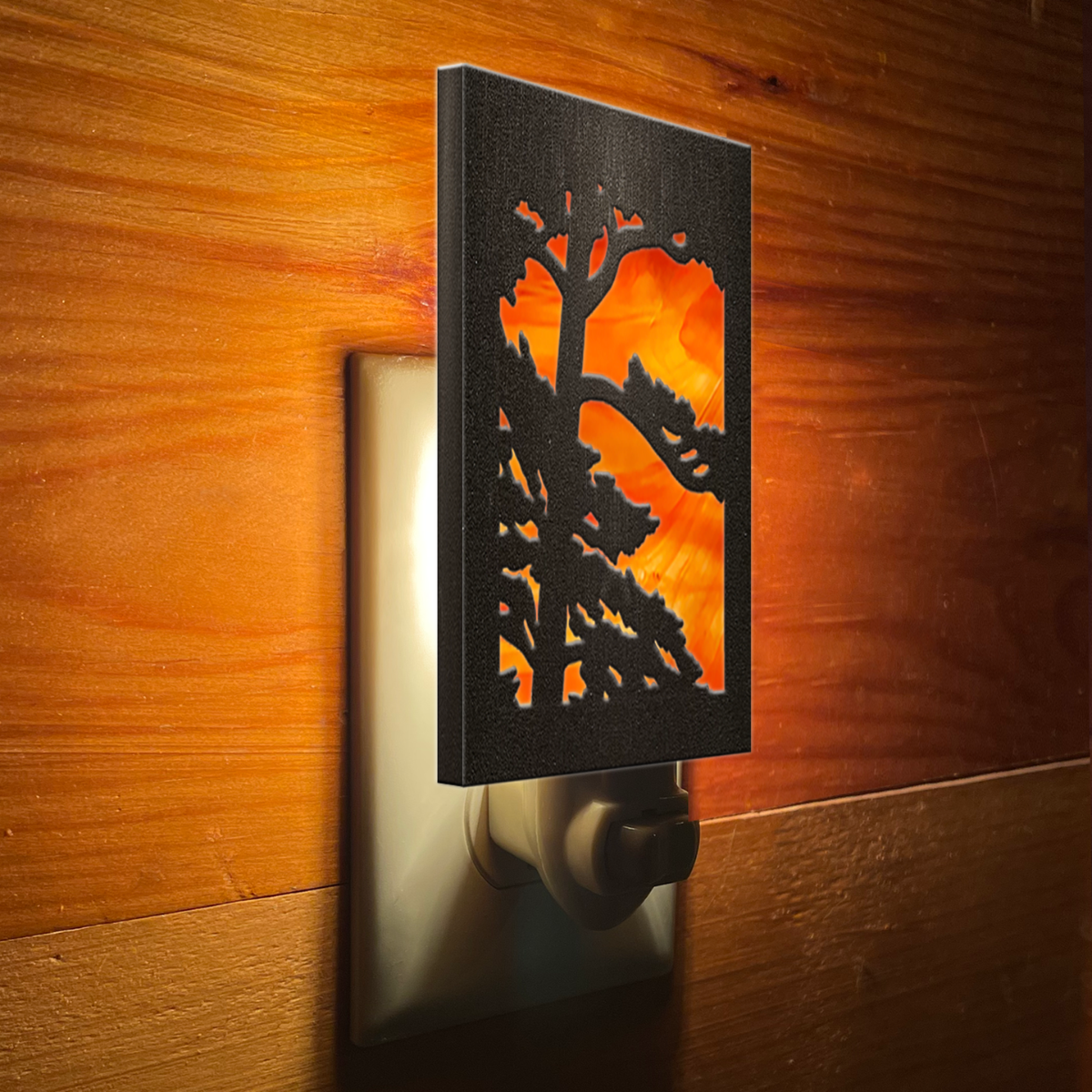 Cut from 20-gauge mild steel and coated in a rich black matte, this night light is sure to bring a special glow to your room. The switch controlled lamp comes with an LED 4-7-watt bulb.