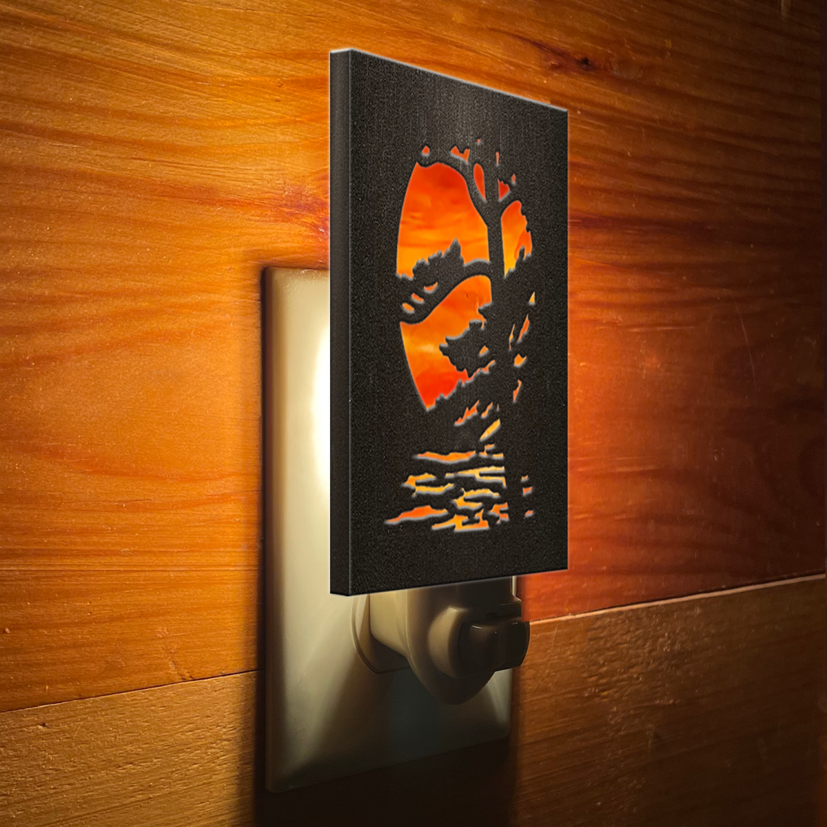 Cut from 20-gauge mild steel and coated in a rich black matte, this night light is sure to bring a special glow to your room. The switch controlled lamp comes with an LED 4-7-watt bulb.